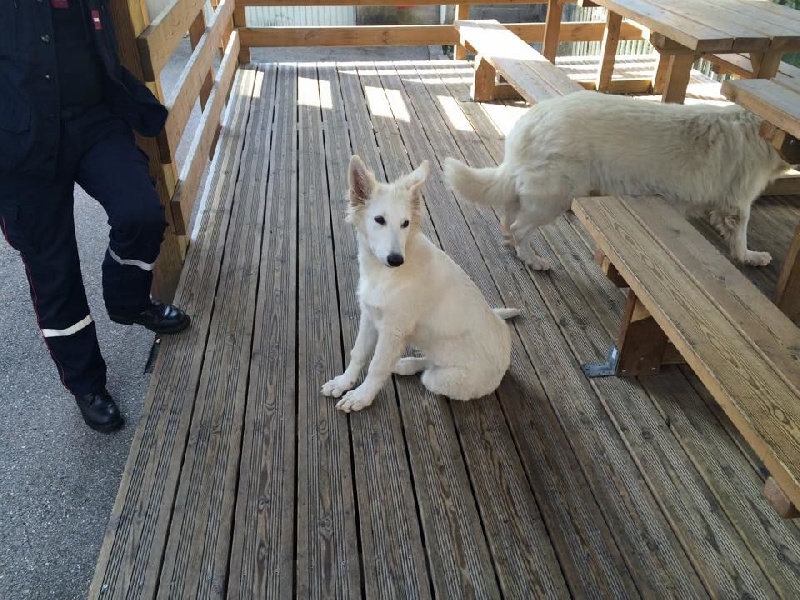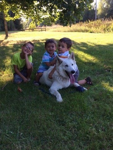 Loup dit Kimi le 11/07/2015 au 50ème jour poids 6600 grammes ça y est il est arrivé dans son nouveau chez lui me voilà avec ma nouvelle famille me voilà avec un nouveau compagnon qui est dans ma nouvelle famille début de mon apprentissage me voilà avec plusieurs autres congénères et Mr pause lol Kimi très relaxe un peu sale après l'entrainement belle allure, super bonne foulée il aime l'eau, de très belle présentation il est super chouette Kimi sort de la baignade Kimi avec les enfants de la famille Loup dit Kimi sur la plage Kimi avec un autre de ses congénères