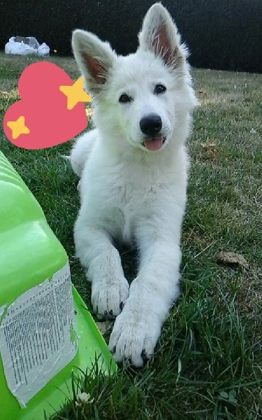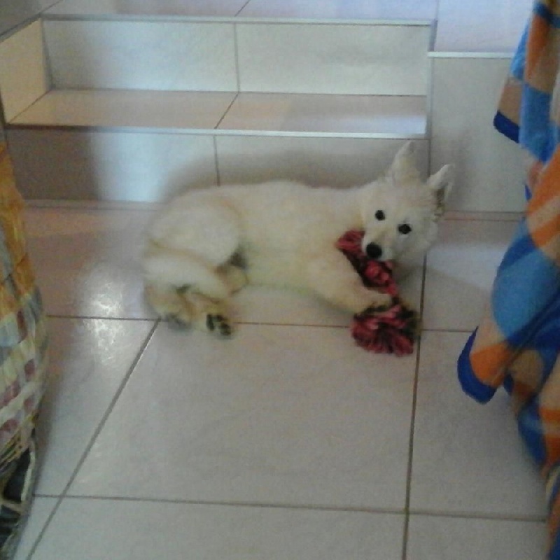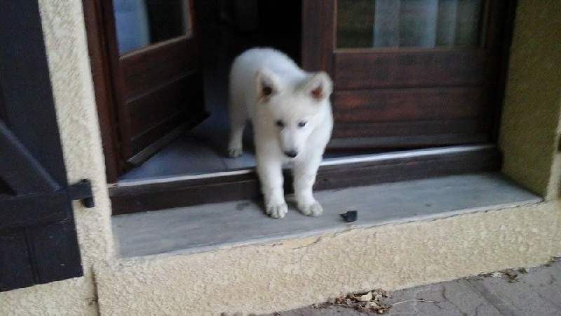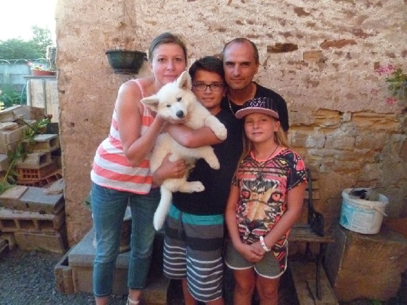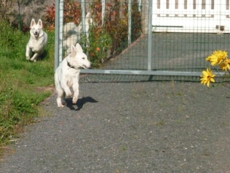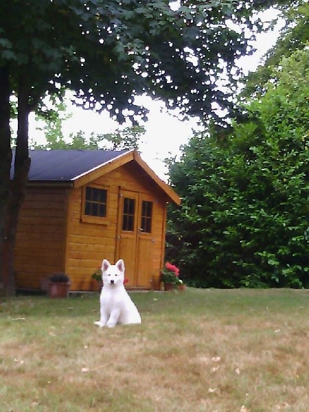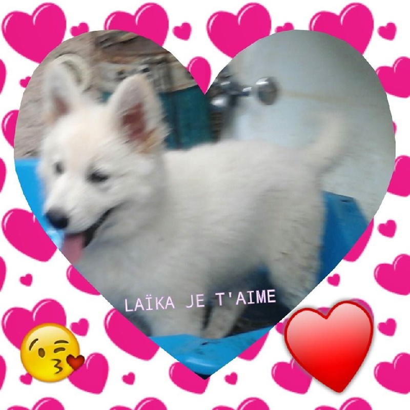 Laïka le 11/07/2015 au 50ème jour 6100 grammes ho ho sont tous très heureux, mais une est pressée de rentrer lol me voilà chez moi photo et montage de Charlène j'ai un nouveau joujou hé celui-là il cuine petite visite dans mon ancienne maison hé j'ai de la place moi, je pause devant le chalet de jardin hé vous voyez ils m'aiment, bien que je fasse quelques bétises lol de temps en temps je suis toute calme lol Laïka très active aussi et bonne joueuse elle court juste devant sa mère oui Laïka au repos