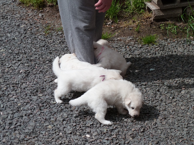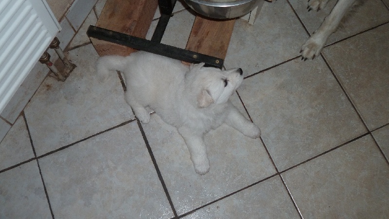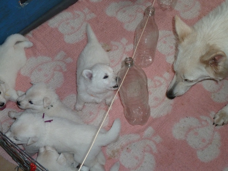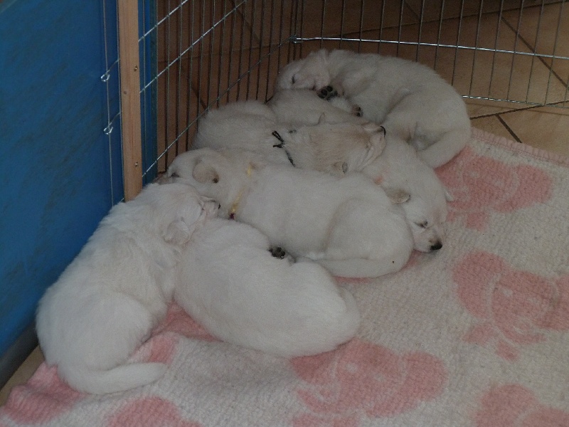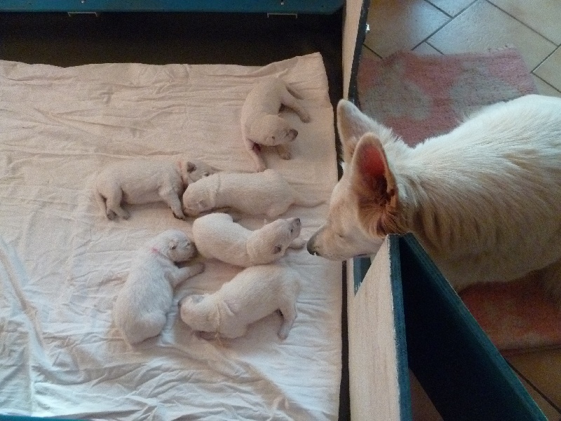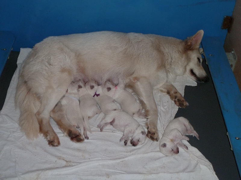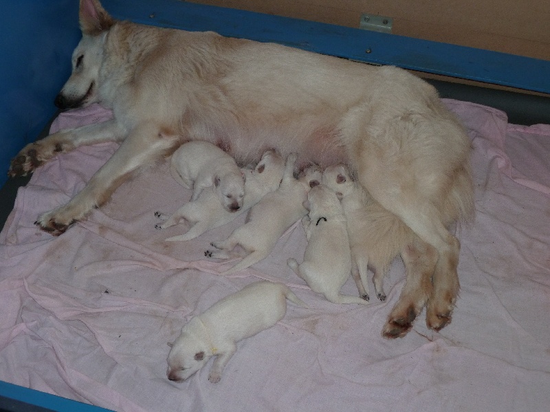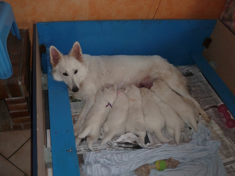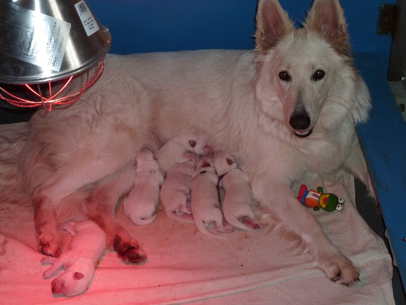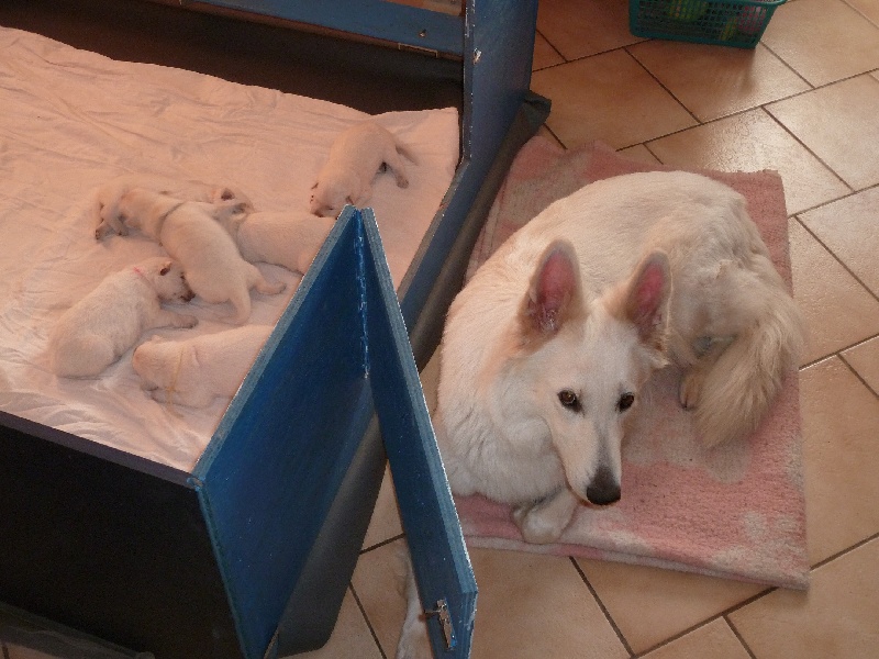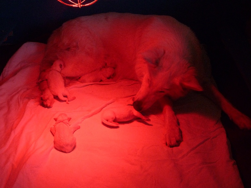 Félia avec ses p'tits 1ère portée 2013 les 6 petits, le jour de leur naissance 14/04/2013 ho ils sont de la couleur rose, mais non, Félia c'est la lampe ben oui faut faire la toilette dis donc facile à dire donnes leurs à boire hé font que ça boire, dormir, piailler m'étonne qu'ils poussent, vite cassent bien la croute ça c'est des beaux bébés hein oui ont poussent nous voici le 22/04/2013 oui faut surveiller qu'ils ne manquent de rien sommes migons hein je protège mes petits personne ne peut rentrer hein Jean-Pierre tous unis le 28/04/2013 hé moi je pause attend nous sommes tous là hé moi j'aime bien être photographié j'ai une bonne tête hein continue je bouge pas moi aussi je sais prendre la pause moi j'attends je ne dis rien c'est impec hein nous sommes tous là le 04/05/2013 on visite un peu une petite balade ça détend oui ben nous c'est mieux sur la courverture nous sommes tous réunis l'union fait la force hé toi grand machin tu me donnes à manger c'est ma caisse na, rester dans le parc alors à boire ou je braille un brin de toilette on joue ensemble nous sommes tous là pour la tétée pas de fainéants drôle de truc dans notre parc toujours vide la bouteille tu vois on est bien dans notre parc je fais la grimace allez balade tous dehors fais chaud je ferais bien une sieste moi bon t'es content pour cette pause bon c'est la dernière pause, compris j'ai dis fini où je mords toi on te connais, reste avec nous, on te tient c'est plus doux ici que dehors ça fait du bien de sortir un peu nous sommes toujours réunis on visite la cuisine je te regarde aussi près de la cuisinière on attend la soupe