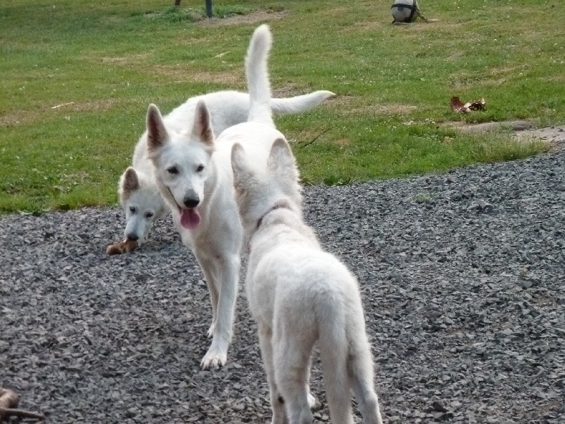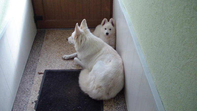 la suite de l'apprentissage des p'tits avec notre maman dehors avec nos premiers maîtres qui nous aiment autant que nous dans la cage et en voiture hé oui maman nous protège même en voiture le pied on se roule dehors ben oui on revient moins blanc nouvelle formule du parc à l'intérieur oui on vit dans la maison notre parc extérieur ben rien à dire on s'éclate nous on salit la maitresse nettoie notre parc on a joué les bricolo fallait pas arracher la tapisserie ho pas bien on aime la cage de maman Félia dirons ce qu'ils veullent nous on s'aime tous couloir refait maintenant plus de place elle est bonne l'eau ici hein Alain ouf du soleil vite un peu de bronzage premier bain elle est bonne l'eau c'est toi qui le dit Istory istory pause pendant le séchage iska mèche rebelle non ça me fais pas rire non pas la tête iloa c'est pas mal j'suis pas mannequin je finis mon séchage iloa toute propre ischa toute belle istory fatigué après le bain tous blancs même notre maman Félia Félia et Istory Félia et Inès jouent toujours en train de jouer toutes les deux observent elles se relaxent ensemble après toilettage Félia observe Iska les 2 soeurs lors de retrouvailles 09/08/2013