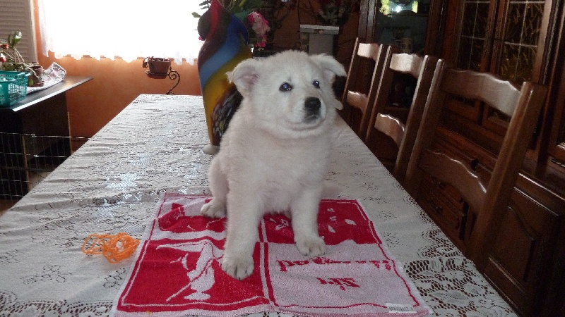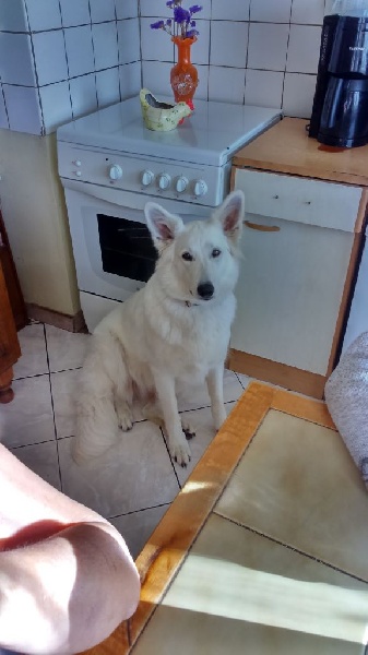Inès rox toute petite je pousse je me tiens bien hein de mieux en mieux bonne pause t'as vu je suis en premier plan il est content aussi me voilà à 37 jours j'ai une bonne bouille j'écoute je bouge pas encore une pause correcte on profite du soleil moi je suis la star t'as vu moi aussi j'ai des dents pointues j'ai toute la gamelle pour moi Inès regarde ce qui se passe et sa mère veille sur elle elles ne se quittent plus Inès pause Inès sur le pas de porte arrière de la maison toutes les 2 en attente de partir en camping-car pas très heureuse mais c'est tous les matins rosée, terrain, heureuse non je ne regarde pas, je sais je suis sâle oui plus belle après 1ère séance de toillettage ouais dira ce qu'lle veut la toiletteuse j'attends ma récompense Inès se croit toujours petite elle monte sur mes genoux St-Amarin elle apprécie la tente elle aussi aime être très près de nous, mais pas sur le lit Inès de près Inès adore jouer au ballon toujours de plus en plus belle Elle est de plus en plus belle, on l'admire Inès devant le canapé, oui pas dessus son premier os de boeuf elle est toujours aussi chouette et pèse 28 kg 200 le 07/12/2013 hé oui beau spécimen me voilà dans la brume matinale tu veux encore une photo hé ben moi je tire la langue non je reste là, plus de photo oui ce jour un an me voilà 1 an ce jour le 14 avril 2014 et voilà une photo pour la cravate de popa mi-mai 2014 encore une pause pour la cravate mais en grande taille me voilà le 28/09/2014 j'ai un gros nonos une belle prise d'Inès dans une bonne position 6 mai 2015 moi je reste sage près des p'tits lol Inès qui reste très près des p'tits de sa mère Inès avec Lorka Inès se relaxe dans l'herbe Inès qui attend