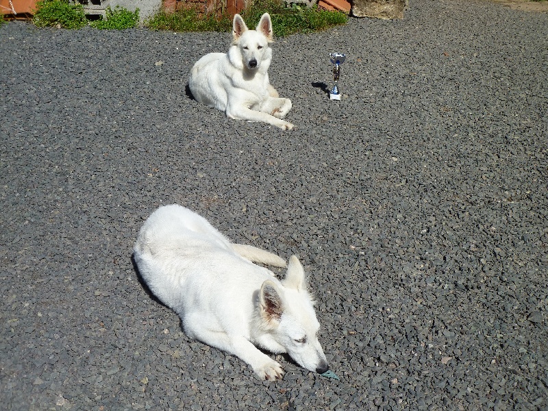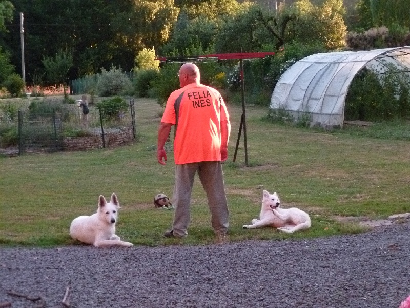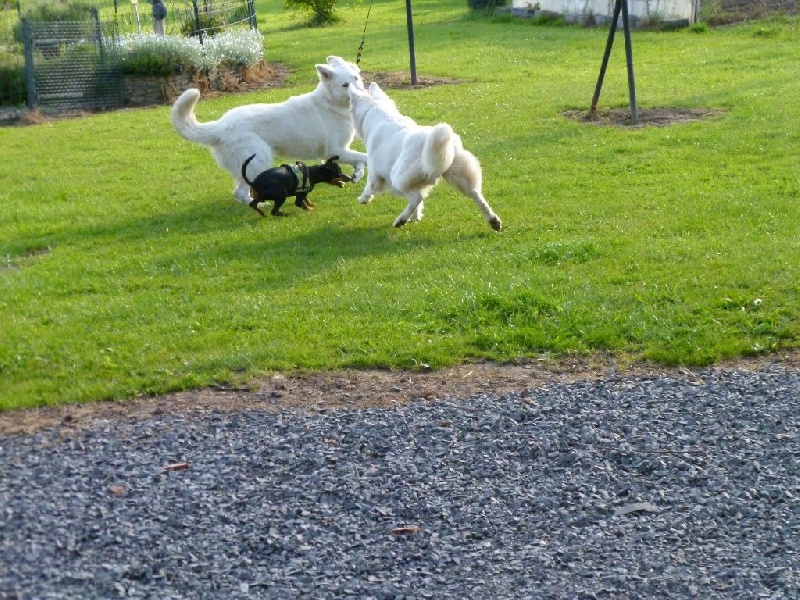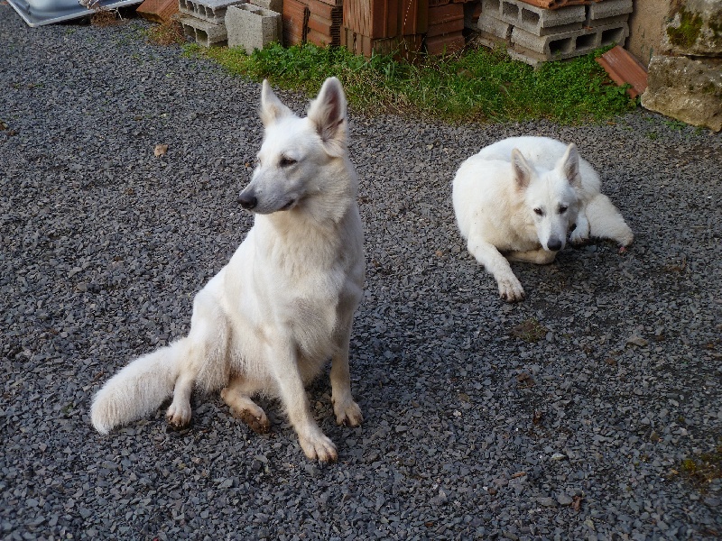 la vie de tous les jours nous sommes réunis en attente de passage pour l'agility toujours prêtent à partir toutes les 2 elle monte toujours sur mes genoux là à St-Amarin le 04/08/2013 le 1er maillot pour début de concours merci Nat et Sréph 1er maillot pour mes 59 années merci à vous mes amis Nat et Stéph toujours ensemble, elle s'amusent dans leur terrain le jour de ses 4 mois, bain de boue, oui elle ne veut pas de photo comme sa mère, elle est très proche de nous après une petite douche, plus blanche, surtout par rapport aux matins mère et fille sont plus blanches après une bonne douche Inès de prés Félia qui se retappe et reprend du poil elles jouent au ballon avec le Papa les 2 toujours ensemble et même le regard est dans la même direction les colliers mis par la Maman, elle sont prêtent à partir Notre Félia retrouve sa forme et sa beauté 1ère coupe elle est heureuse ma mère regardes derrière moi oui je pousse, et, nous sommes belles toutes les 2 Inès arrive au même niveau que sa mère, elle grandit Félia a aussi un os de bœuf pour Inès voir son album Inès qui a la même allure que sa mère première neige pour Inès qui joue toujours bien avec Félia la couleur change dans la neige toutes les deux après un bonne douche elles jouent avec leur copain Bambou elles prennent Bambou sur le fait, pas là Devant chateau de Saverne trophée agility 10 et 11 mai 2014 avec nos 2 nouveaux harnais personnalisés 1ère rencontre Félia, Inès avec Istory et Fleur recontre au Kilstett super rassemblement bonne humeur le 1er mai sous la pluie mais dans la gaiété bon après l'effort on connait la suite lol fifilles au repos camp-car les 2 fifilles à côté d'un étang chut Papa pêche lol 10/05/2015 Félia avec ses p'tits au 10 jours une photo de toute la famille Bruyères 30/08/2015